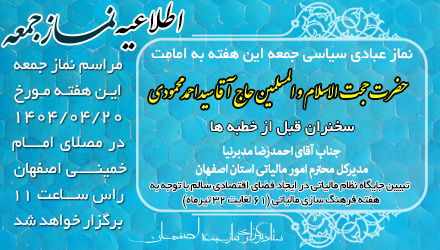اطلاعیه نماز جمعه ۲۰ تیر ماه ۱۴۰۴